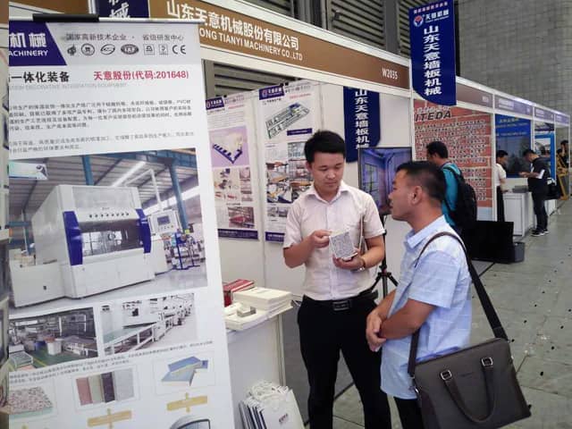 本次展覽會現(xiàn)場人頭攢動,氣氛十分熱烈,天意機械展位也是人氣火爆,前來咨詢鋼結(jié)構(gòu)集成房屋、外墻保溫裝飾一體化板生產(chǎn)線,輕質(zhì)墻板生產(chǎn)線、復合墻板生產(chǎn)線等產(chǎn)品的客戶絡繹不絕。銷售部李經(jīng)理,熱情的向來訪的每位客戶,介紹了天意綠色建材裝備在鋼結(jié)構(gòu)建筑、裝配式建產(chǎn)業(yè)化中的應用優(yōu)勢。